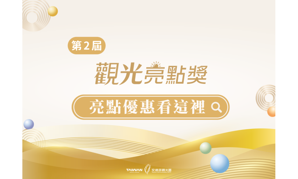 交通部觀光署甫於11月11日公布第2屆「觀光亮點獎」獲獎名單,為慶祝獲得這份殊榮,各獲獎亮點紛紛推出精彩超值促銷優惠,好康橫跨住宿、購物、餐飲、入園、體驗、社群活動等各類別。本次優惠活動中,民眾不僅有機會將價值新臺幣16,000元的遊程帶回家,更有機會透過集章活動抽中黃金及最新iPhone手機!各亮點熱情歡迎旅客以最超值的優惠,深度體驗觀光亮點的多元魅力。