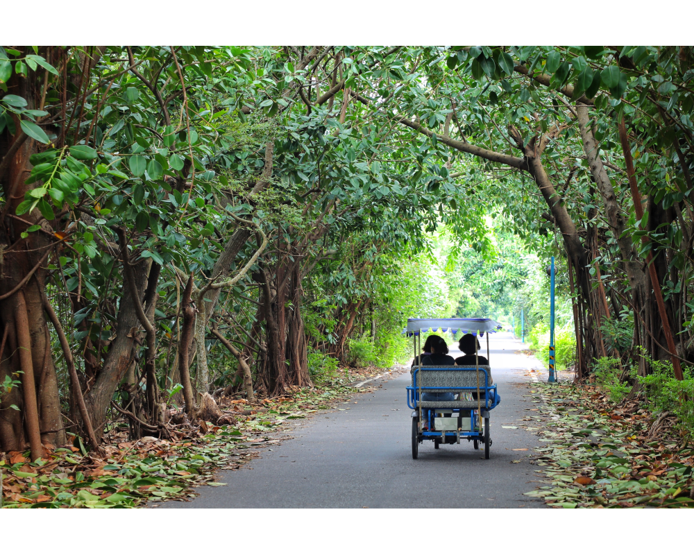 新屋綠色隧道是一條結合自然生態與休閒運動的腳踏車道,北端延伸至永安漁港,南端則與雙新腳踏車道相連,提供了多元自然與文化的精彩之旅。