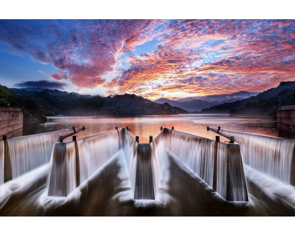 鯉魚潭水庫位於大安溪支流景山溪上,跨三義、大湖與卓蘭三鄉,主要功能涵括民生給水、農業灌溉、防洪與水力發電。作為全台唯一的離槽式水庫,其鋸齒狀無閘門溢洪道長約66公尺、隨水自然溢流,形成壯麗水簾景觀,兼具工程與觀光美學價值。庫區被群山環抱,湖面波光粼粼,湖畔環伺闊葉林與次生林,棲息豐富魚蝦生態,是生態與景觀兼備的綠意秘境。水庫周邊另串連舊山線鐵道地景,包括勝興車站、龍騰斷橋、鐵道自行車路線與觀虹橋,提供親子漫遊、網美打卡與文化深旅體驗。此外,每逢秋末冬初,美人樹盛開成粉紅地毯,搭配周邊農村文化,增添踏青樂趣。