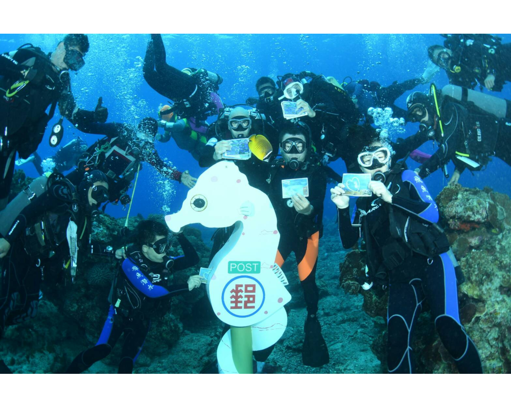 臺東縣政府與中華郵政聯手,在綠島石朗浮潛區離岸60公尺、水下11米深的沙地上,設置目前世界上最深的海底郵筒,以臺東海域特有的珍貴品種、有著綠島海洋小精靈之稱的「克里蒙氏豆丁海馬」做為郵筒造型,深受全世界的潛水客喜愛,並在附近設置了海洋之心人工魚礁,成為綠島最熱門也最特殊的打卡聖地。背上氧氣瓶、帶上特製明信片,潛入清澈湛藍的太平洋,將滿載祝福的明信片,投入海底郵筒傳遞到你的心之所向。